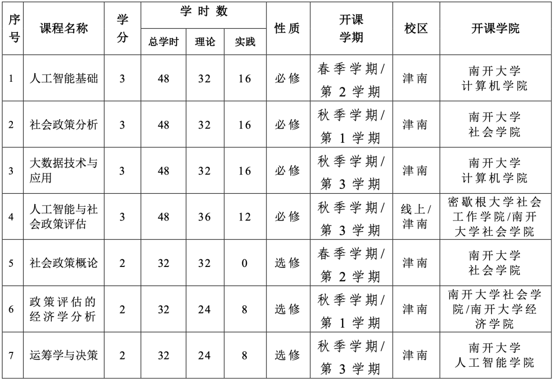 学生将学习如何收集、处理、分析大规模数据集,并使用人工智能工具进行政策模拟、预测和评估。同时,注重培养学生的社会责任感和职业道德,倡导他们运用所学知识服务社会,推动社会发展。