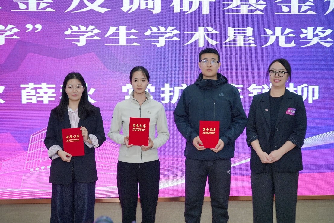 刘欣、薛秋、白博仁三名同学荣获“昆仑社会学”学生学术星光奖(二层次)。常扩、蒋销柳两名同学荣获“昆仑社会学”学生学术星光奖(三层次)。