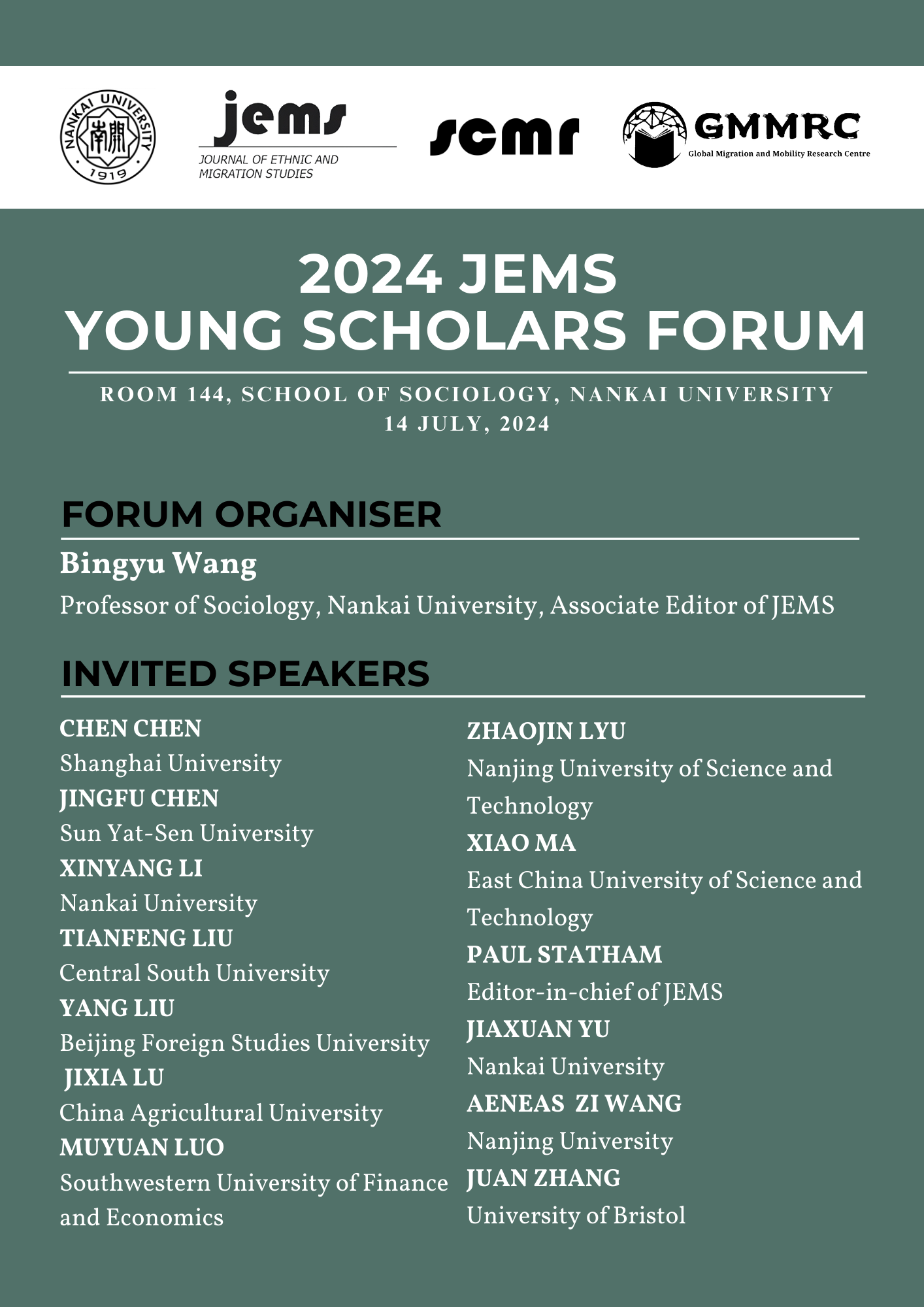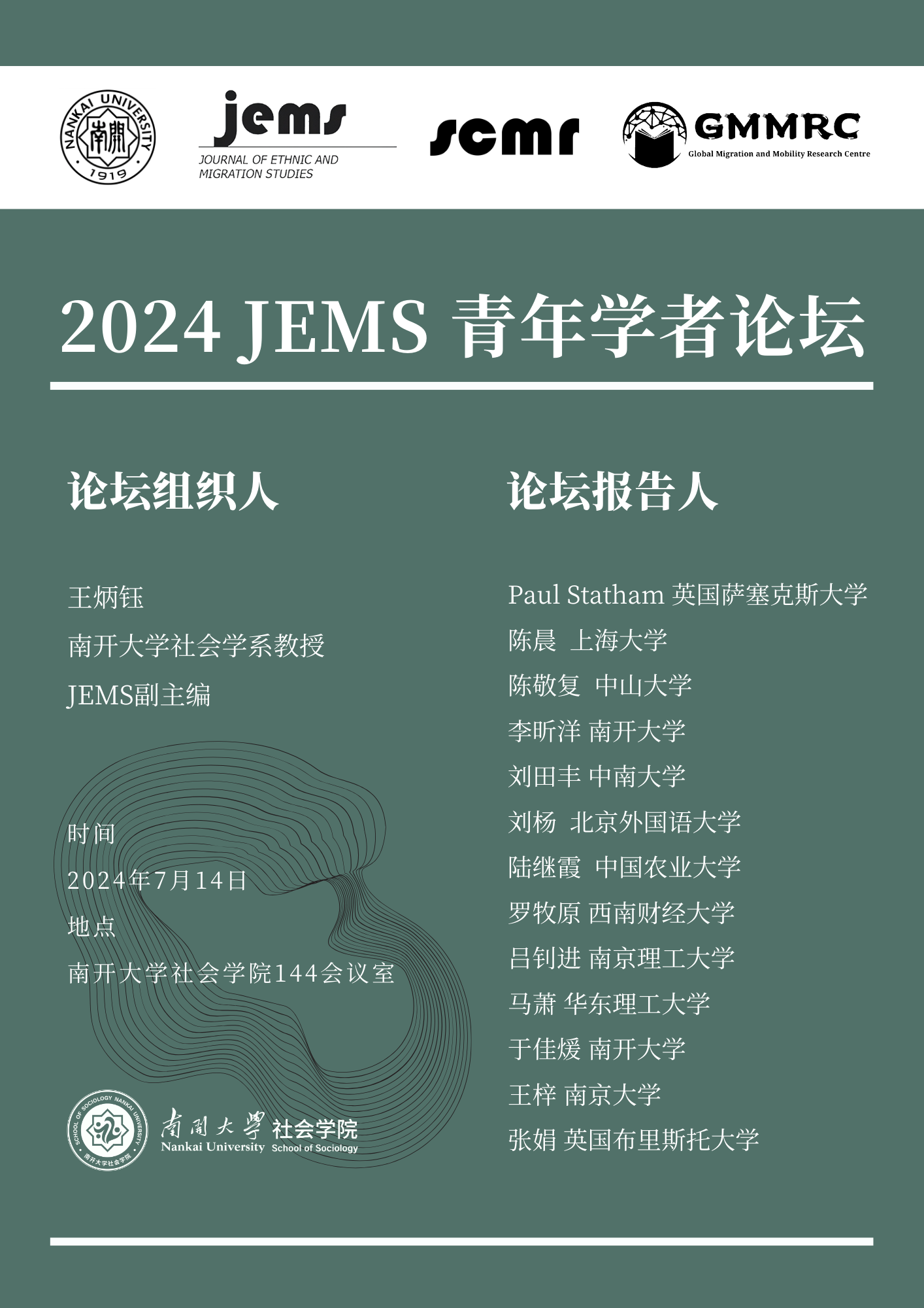 bv伟德国际1946将于2024年7月14日举办“2024JEMS青年学者论坛”。该论坛以bv伟德国际1946全球移民与流动研究中心(GMMRC)以及移民研究国际权威期刊Journal of Ethnic and Migration Studies(JEMS)为平台,将聚焦移民与流动等相关研究领域的前沿成果和最新发展趋势,旨在更有效地链接优质海内外学术资源、为学者们提供更多交流和合作的机会。