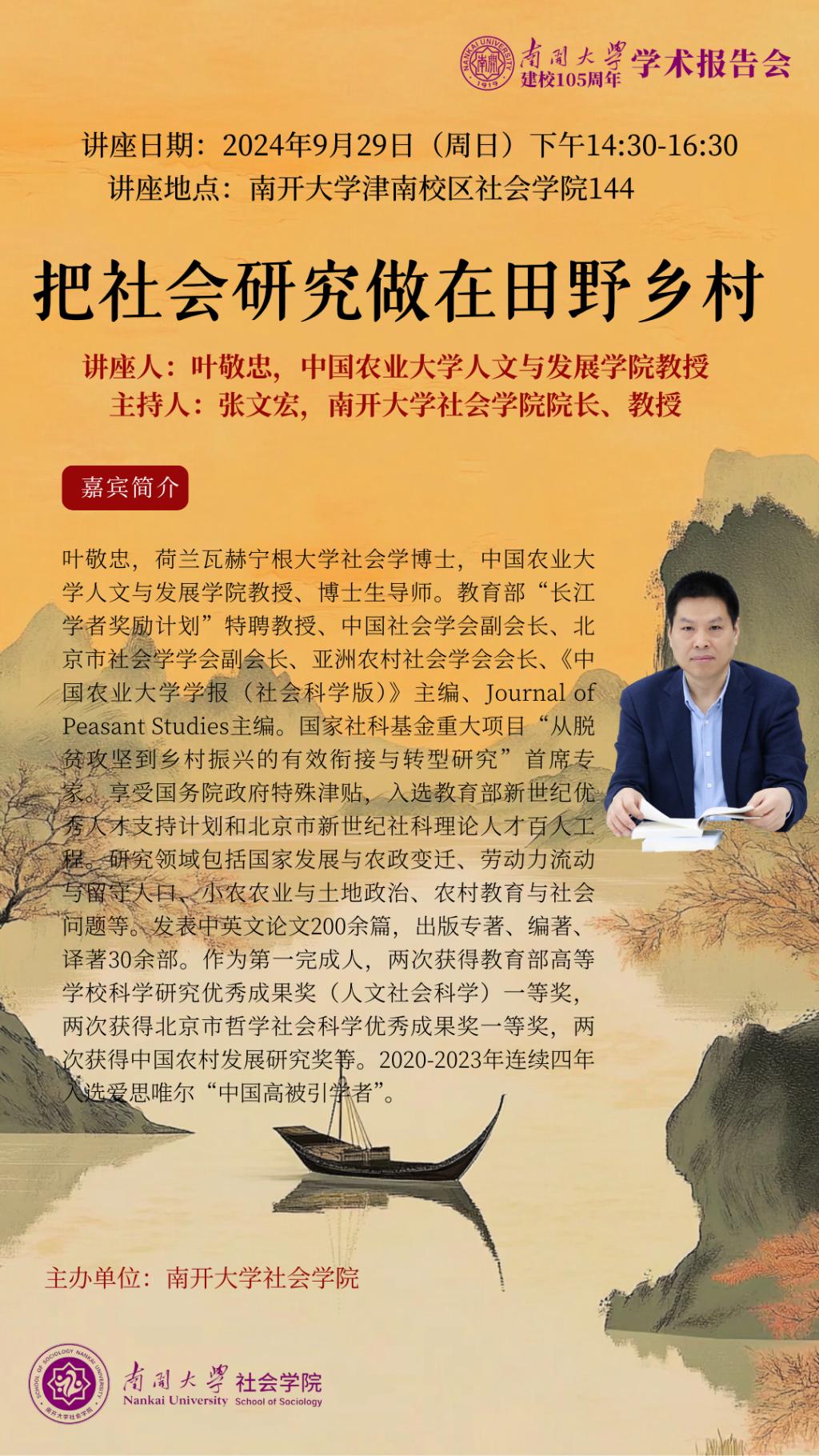 讲座人:叶敬忠 中国农业大学人文与发展学院教授