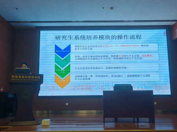 在防范电信诈骗讲座过后,我院教学科研办公室老师杨春雨面向全日制研究生新生,全面介绍了研究生培养工作及安排,并发布了教务教学指南。杨春雨老师重点讲解了选课流程、学术规范及学业考核评估等内容,并通过现场实操演示选课系统帮助新生快速掌握操作技巧,还贴心地公布了教学相关的咨询联系方式,确保每位同学都能安心前行,无后顾之忧。最后,她鼓励大家积极参与各类学术活动,提升个人研究能力,也祝愿每一位新生都能够顺利开启并精彩演绎自己的研究生学术生涯。